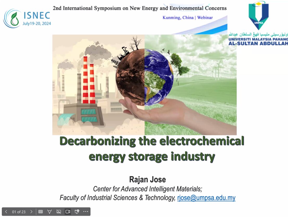 Prof. Rajan Jose from Universiti Malaysia Pahang Al-Sultan Abdullah, Malaysia delivered his keynote speech titled "Decarbonizing the Materials’ Share in Electrochemical Energy Storage Industry".